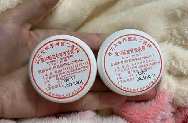 黄体酮达克罗宁乳膏、复方倍他米松乳膏:这两个药是华西自制的药,保质期不长,不得不说一开始确实有用,几天就不痒了,但是后续又复发了,而且还更痒,都抓坏了,所以告诫大家不要用,像什么物理治疗啊,激素药啊,能不用就不用。